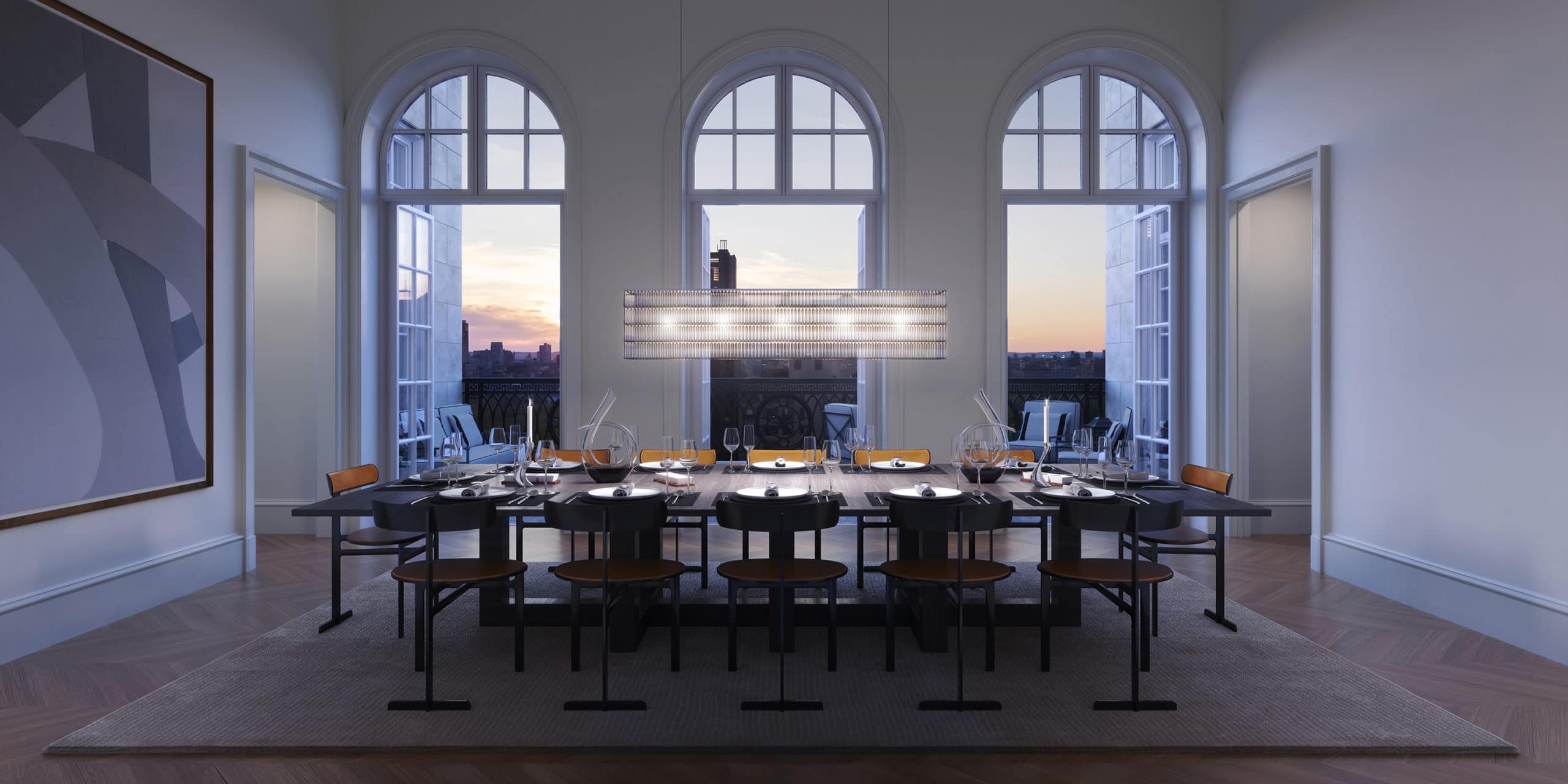 The 6,600-square-foot penthouse of Upper East Side condominium The Benson has gone into contract at its full asking price of $35 million, the Wall Street Journal reports. The seven-bedroom spread has multiple terraces, hand-painted cabinetry designed by Christopher Peacock, fireplaces with Pietra Gray marble hearths, and radiant-heated bathroom floors. The Peter Pennoyer-designed building features a host of amenities, including a rooftop lounge overlooking Central Park, a half basketball court, a gym, and a spa. Developer Miki Naftali predicts The Benson will be ready for move-ins by the end of 2021.
