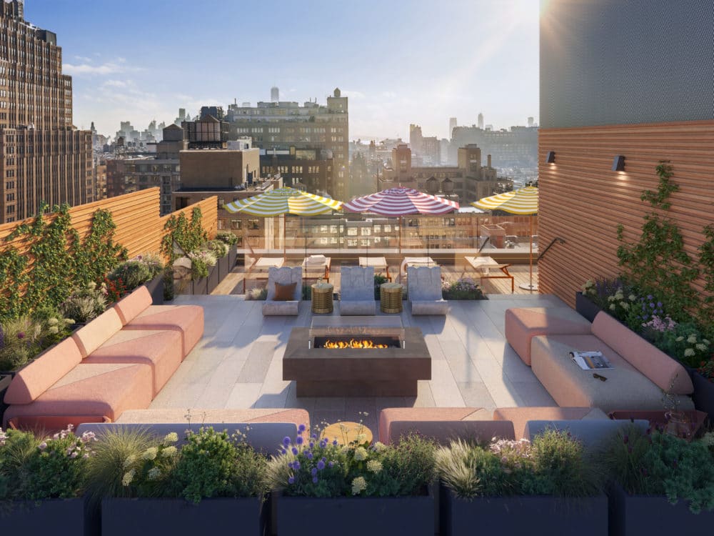 It’s difficult to say what makes this new luxury condominium development stand out the most. To start, there’s the location, at the intersection of some of New York’s most vibrant neighborhoods: this is where Chelsea, Flatiron, and Nomad come together, offering access to restaurants and bars, art and museums, parks and greenways. Then there’s DXA studio’s striking geometric facade, with precast concrete and bronze inlays framing oversized windows. The amenities are impressive, to say the least, including a comprehensive wellness suite, a library-like lounge, and a rooftop terrace with a “Sky Beach”. This is Chelsea living for the 21st century.